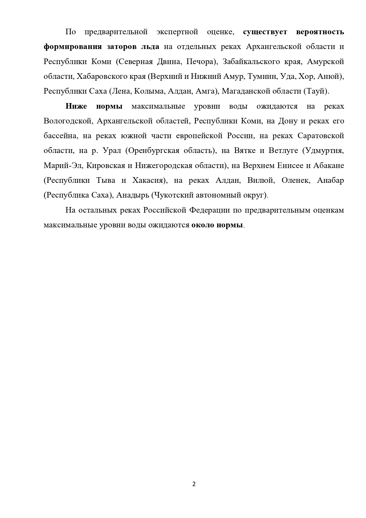 Предварительная оценка характера весеннего половодья на реках Российской Федерации в 2026 году, а также ориентировочная оценка ожидаемого притока воды в крупные водохранилища во втором квартале 2026 года