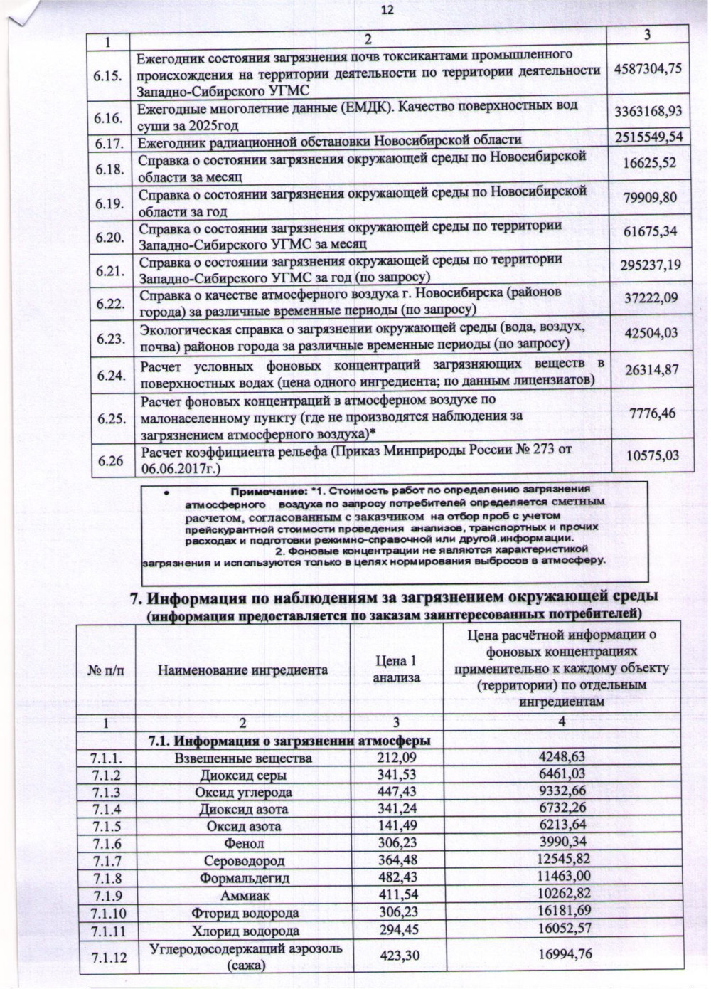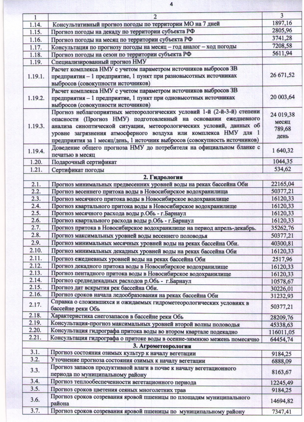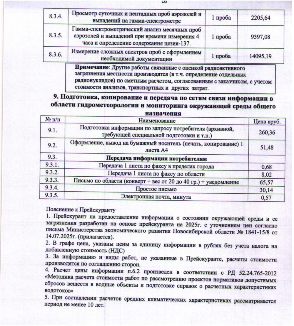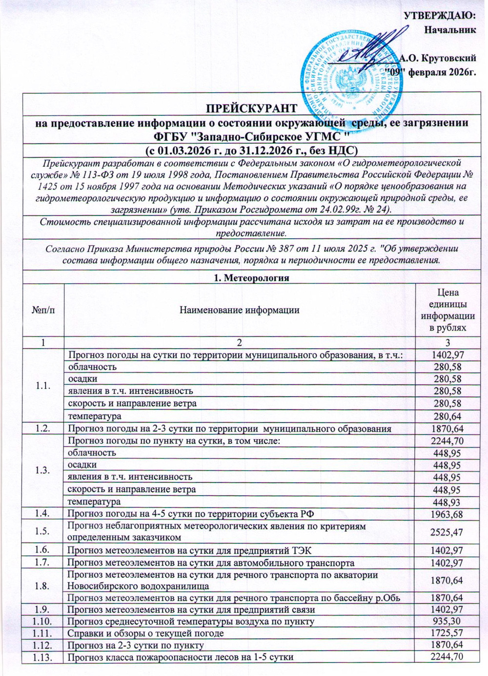 Прейскурант 2026