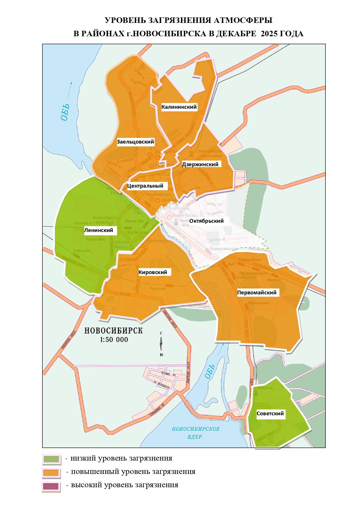 г. НОВОСИБИРСК. - В декабре 2025г. уровень загрязнения атмосферы города оценен как повышенный (взвешенные вещества СИ=2,0 НП=3,3%, оксид углерода СИ=2,5 НП=1,3%, фенол СИ=2,0 НП=1,3%).
